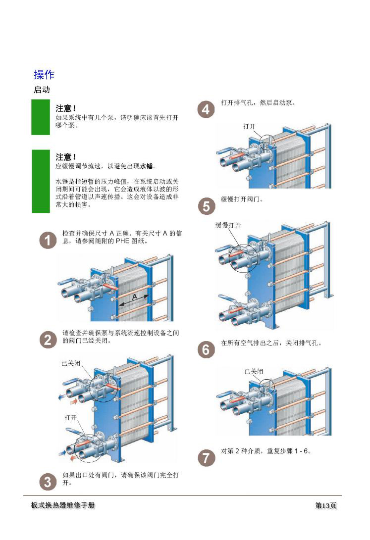 板式换热器连接管路与启动